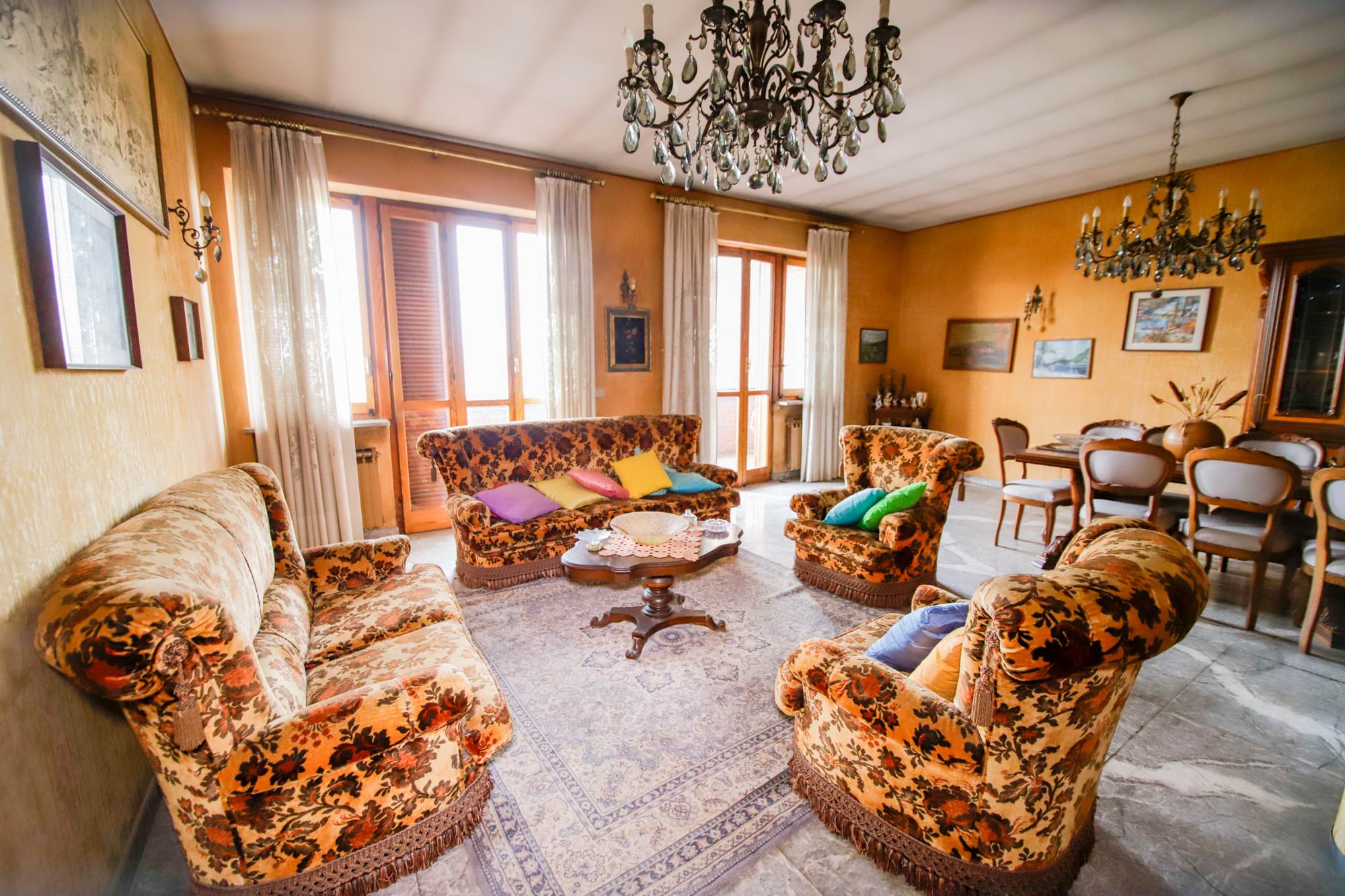 Nelle immediate vicinanze di Via Leinì, sulla direttrice di collegamento con il Comune di Leinì a poca distanza dal Centro del Paese e non distante dal Supermercato LIDL, in palazzina edificata fra gli anni '70 ed '80, in contesto bifamiliare proponiamo appartamento, libero all'Atto Notarile di ampie dimensioni, dotato di tripla esposizione così composto: